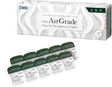 「シード AirGrade 1day UV W-Moisture TORIC」は、高い酸素透過率と快適な装用感を兼ね備え、広い光学領域と厚みを抑えたバラスト部にこだわったシリコーンハイドロゲル素材の1日使い捨て乱視用コンタクトレンズです。
